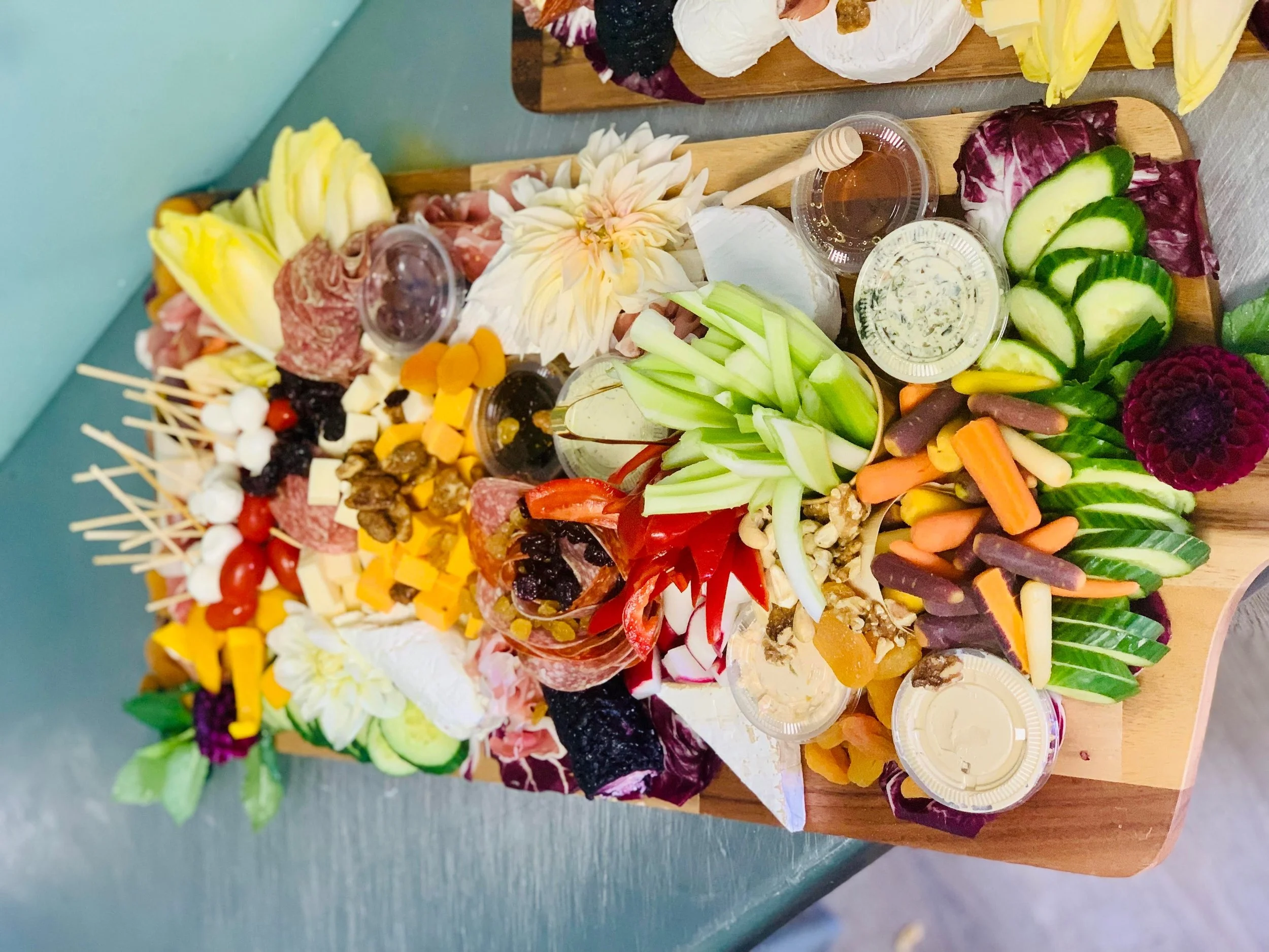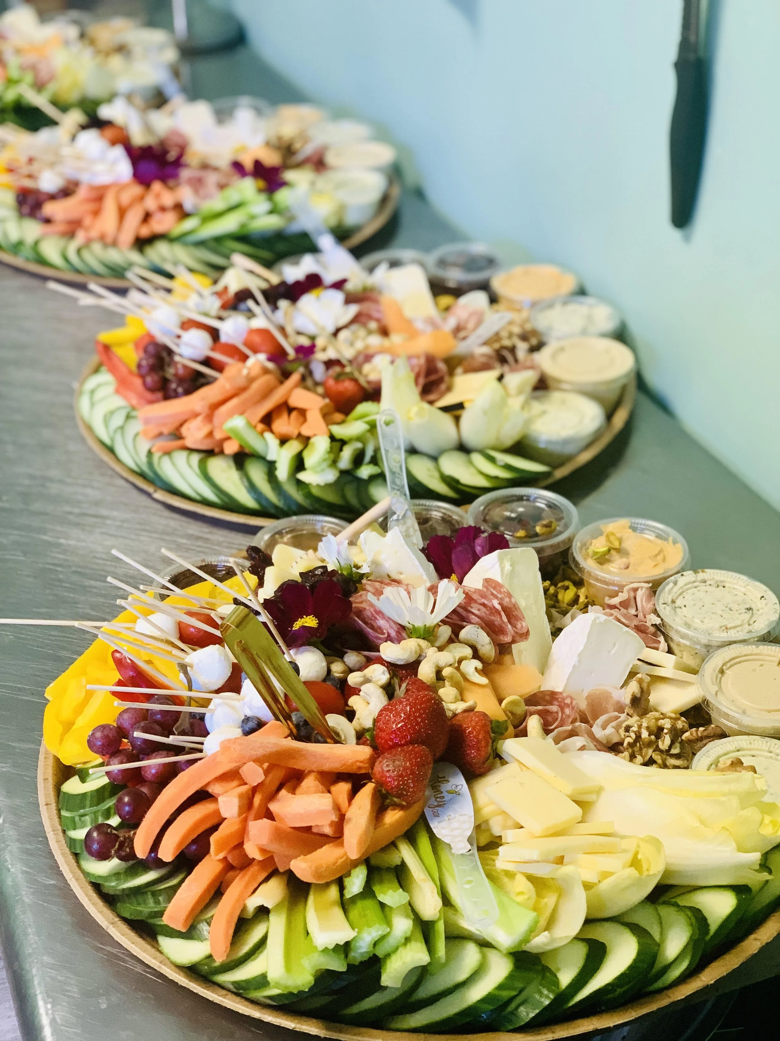 Additionally, I also offer charcuterie + crudités boards on holidays and by special order. These are such fun and a creative outlet for me. They include a huge variety of vegetables, dips, spreads, drizzles, cheeses, cured meats, dried and fresh fruits, and nuts. A true cornucopia perfect for entertaining a large group.