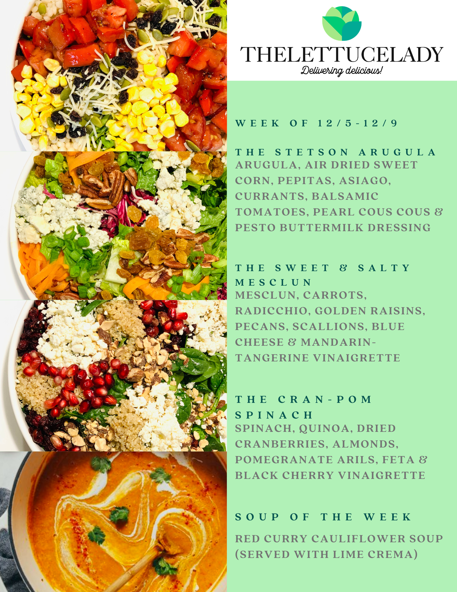 In November 2020, I began The Lettuce Lady in order to provide family and friends with delicious, healthy meals delivered to their doors.